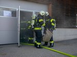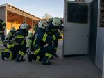 Im Anschluss war im ehemaligen ASZ-Gebäude ein entsprechendes Übungsszenario vorbereitet. Durch abgedeckte Fenster und eine Nebelmaschine wurden Sichtverhältnisse wie bei einem Brandeinsatz nachgestellt. Die Atemschutztrupps hatten die Aufgabe, das Gebäude zu durchsuchen, vermisste und verletzte Personen zu finden und ins Freie zu bringen. Zusätzlich waren auch gefährliche Stoffe im Gebäude zu lokalisieren. Auch Abschnittsfeuerwehrkommandant Robert Gierlinger ließ sich diese Chance nicht entgehen und versteckte sich zweimal im Gebäude, um anschließend von den Atemschutztrupps gerettet zu werden.