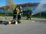 Zu Beginn stand ein kurzes Strahlrohrtraining am Programm, bei dem der Umgang mit den Strahlrohren wieder aufgefrischt und geschult wurde.